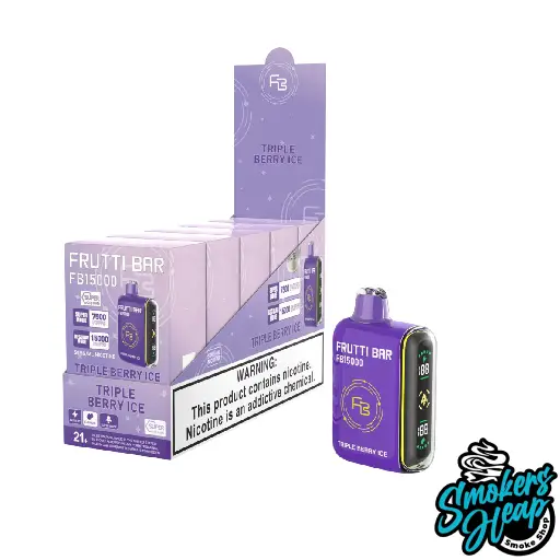 The Triple Berry Ice Frutti Bar mixes three juicy berries with a cool icy finish, giving you a refreshing and flavorful vape experience. Each puff brings a smooth wave of sweetness followed by a crisp chill.